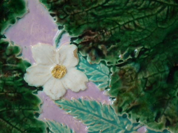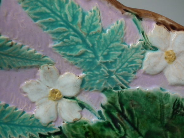 Holdcroft (attributed) Majolica fern & flower platter