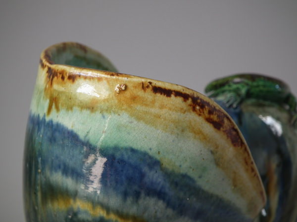 Flaking to the shredded clay and around the lower base edge.