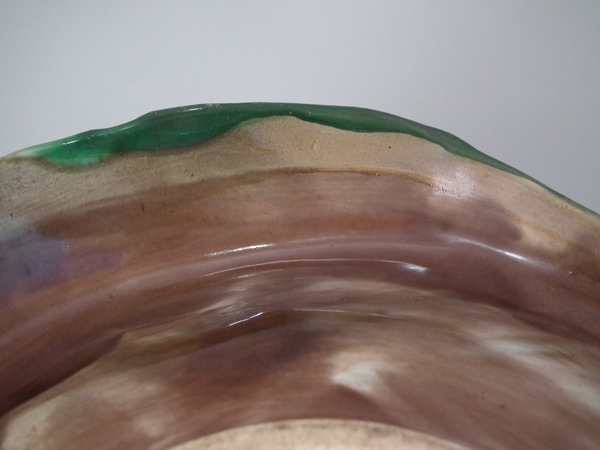 KILN EFFECTS: glaze run to the green glaze.