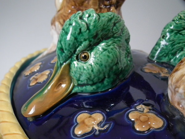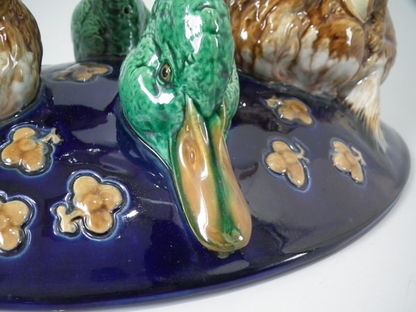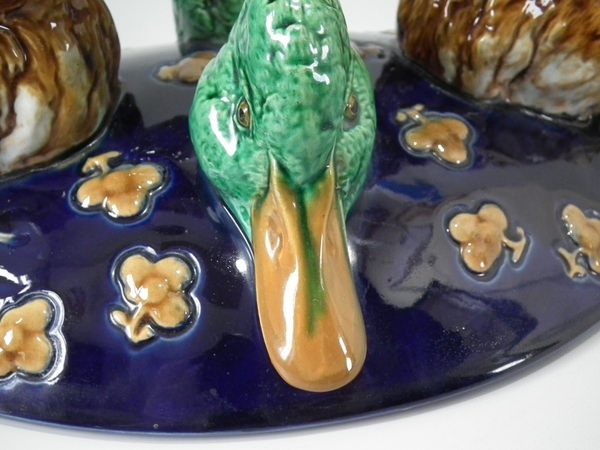 Rare Minton Majolica hare & mallard duck game pie dish