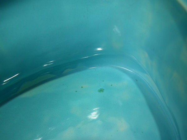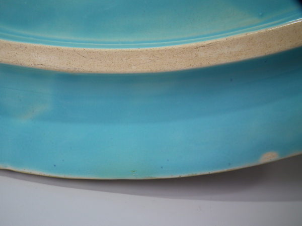 a few small flecks of stray coloured glaze to the interior