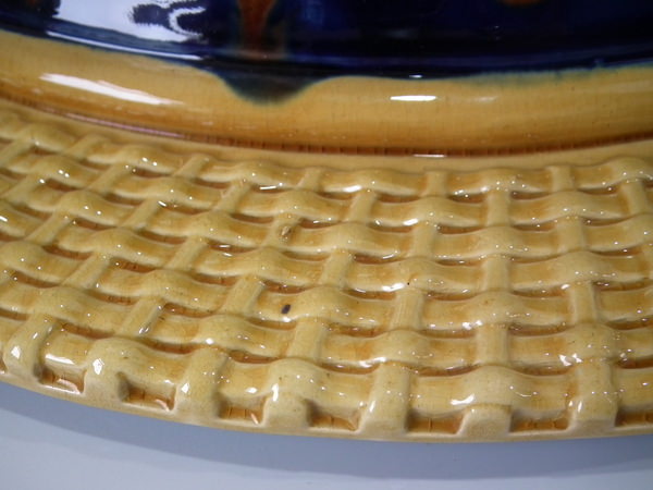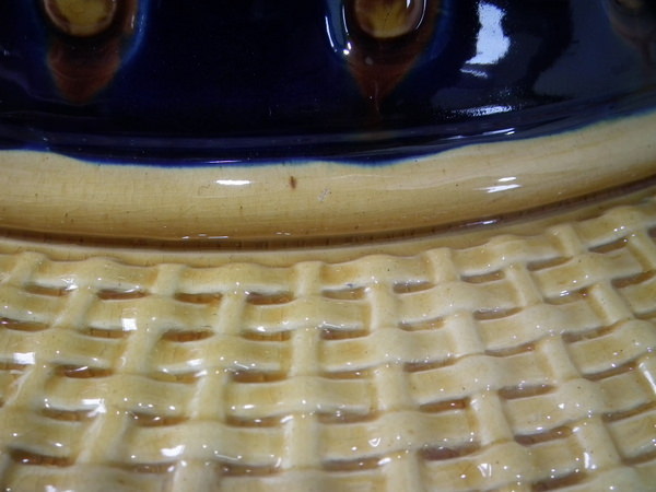 KILN EFFECTS: glaze run to the green and cobalt blue glaze;