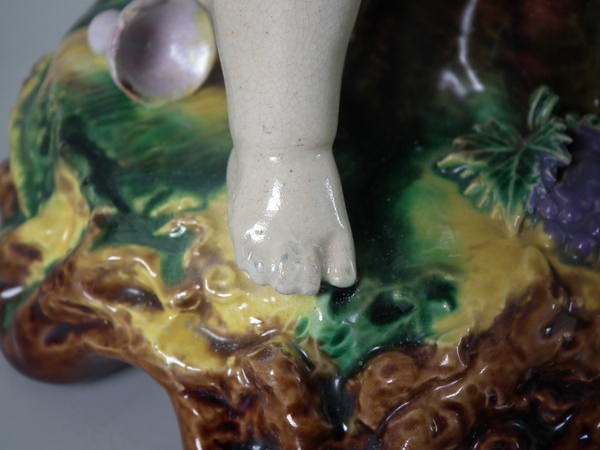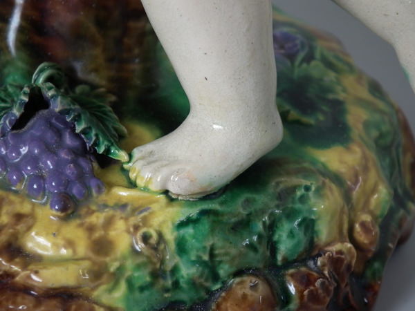 Majolica putti with grapes compote