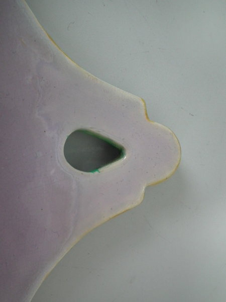 Remodelled top section above hanging hole, tip of beak and tip of one bulrush.