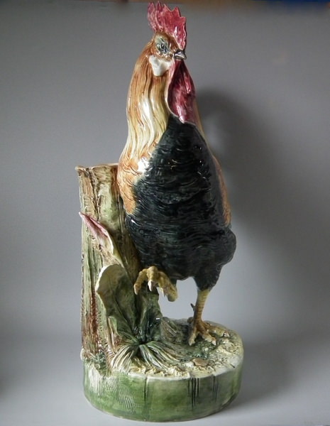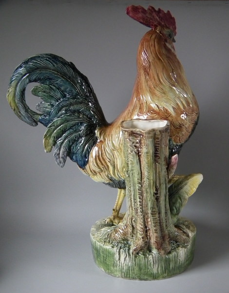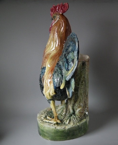 Large Majolica Cockerel/Rooster stick stand