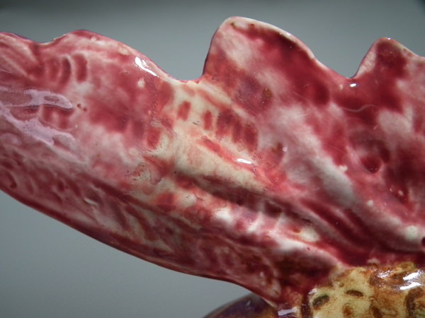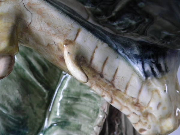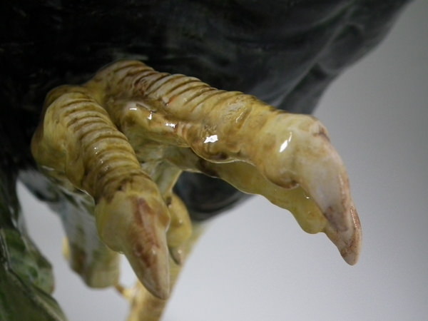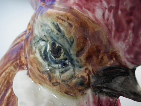 RESTORATION: Tip of comb and three claws on right foot reglued and joins retouched.