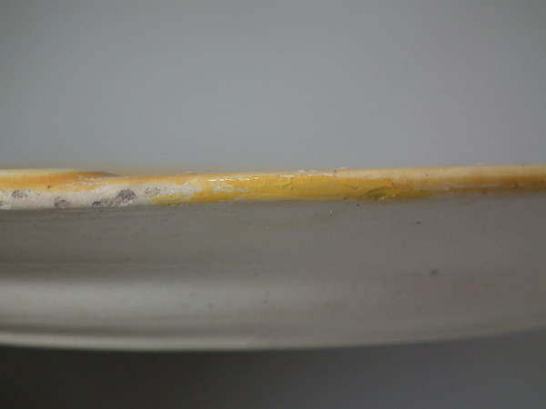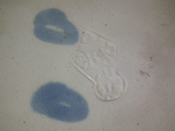 KILN EFFECTS: glaze run to the lilac and green glazes.