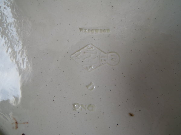 The piece bears maker's marks for the Wedgwood pottery. English diamond registration mark for the date 15/06/1875. Marks include a factory specific date cipher for the year 1878.
