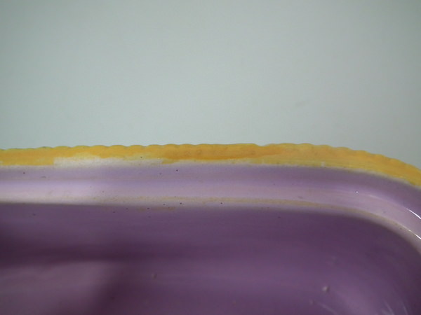 CONDITION: Cover: Generally good. KILN EFFECTS: small craze line to the upper side of the rim.