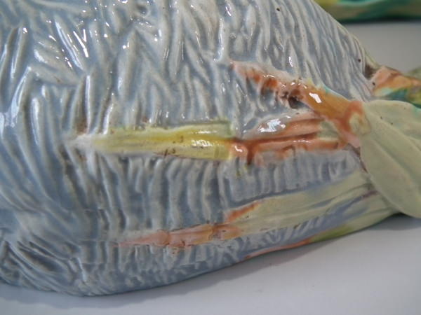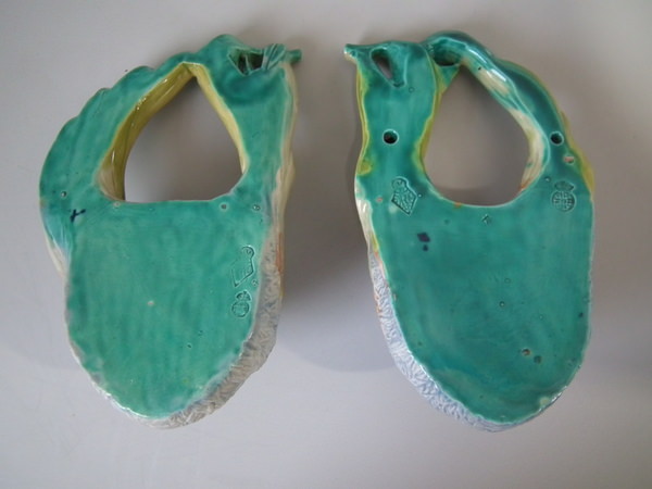 Pair Majolica Worcester nest wall pockets