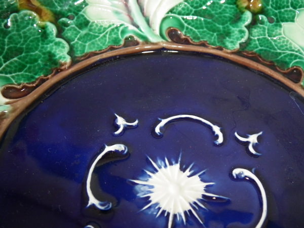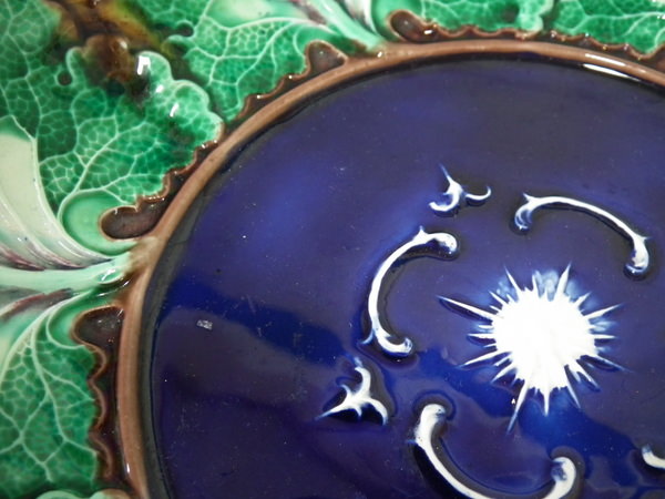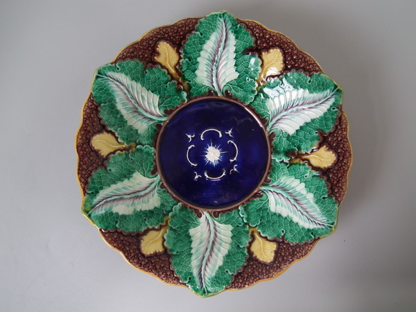 Victorian, circa 1871. 2.1ins high, 10.8ins wide, 10.8ins depth. Wedgwood Majolica bowl which features cabbage leaves.
