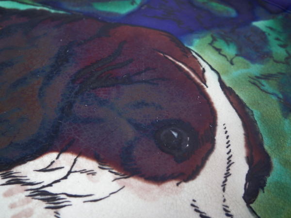 Victorian, circa 1872. 9.3ins high, 9.3ins wide, 0.8ins depth. Wedgwood Majolica plate which features a hound.