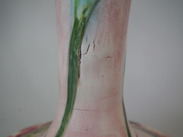 KILN EFFECTS: over glazed shrinkage lines to the neck of the vase;
