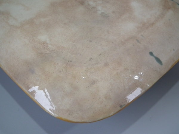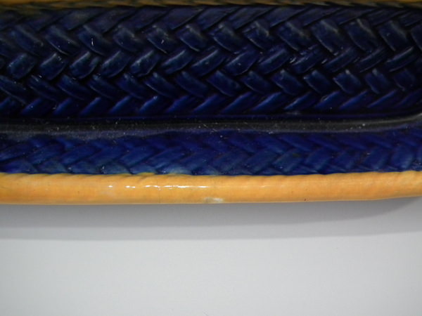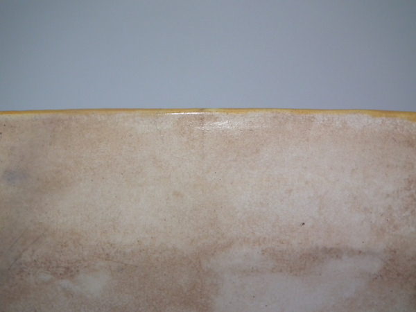 RESTORATION: Section of tray edge reglued and join retouched.