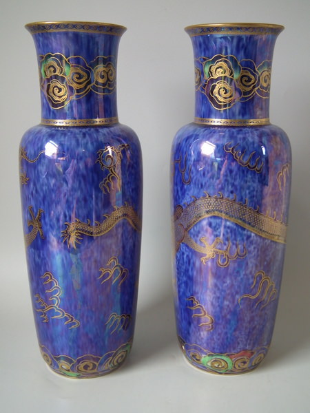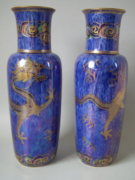 Large Pair Wedgwood Celestial dragon lustre vases
