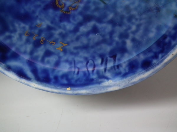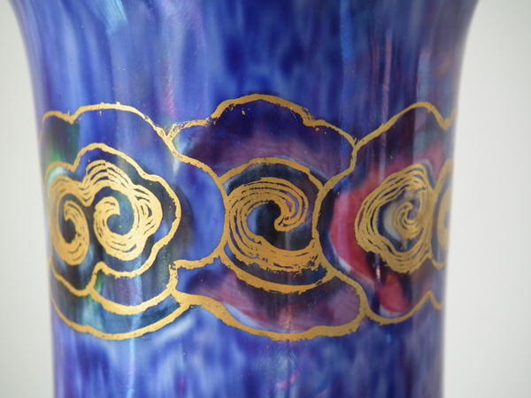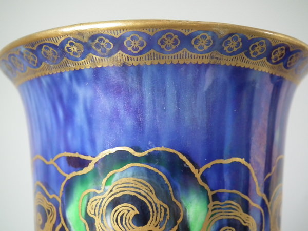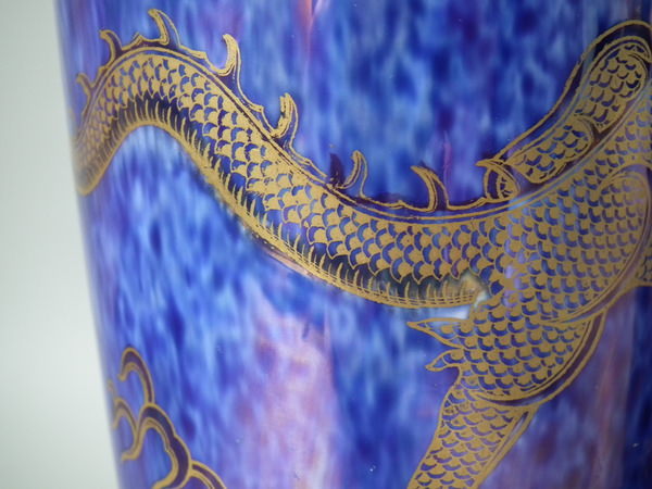 Decorated with the Celestial dragon in gilt on a mixed blue lustre background.