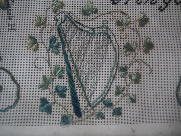 Some stitch losses to the harp motif.