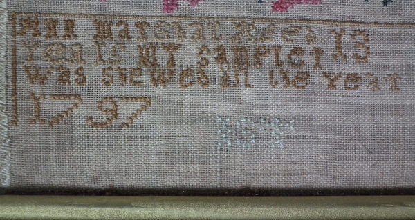 Signed and dated 'Ann Marshal Aged 13 years my sampler was sewed in the year 1797'.