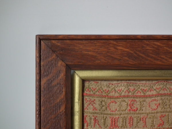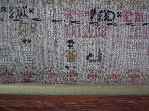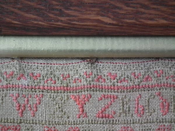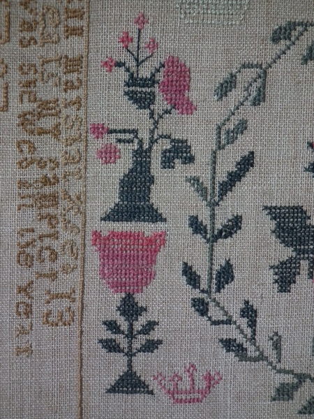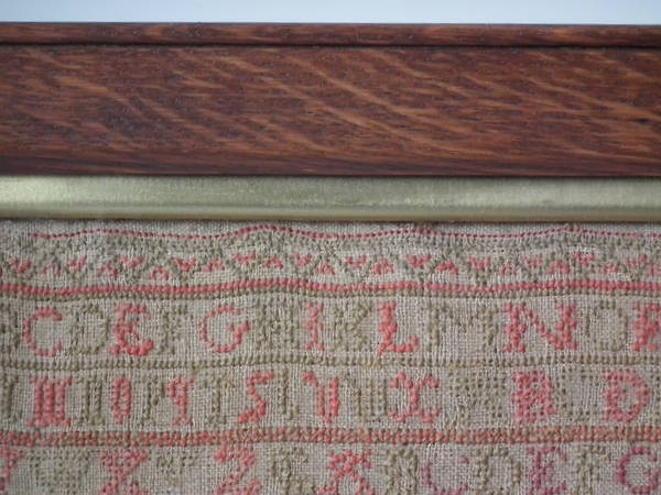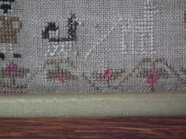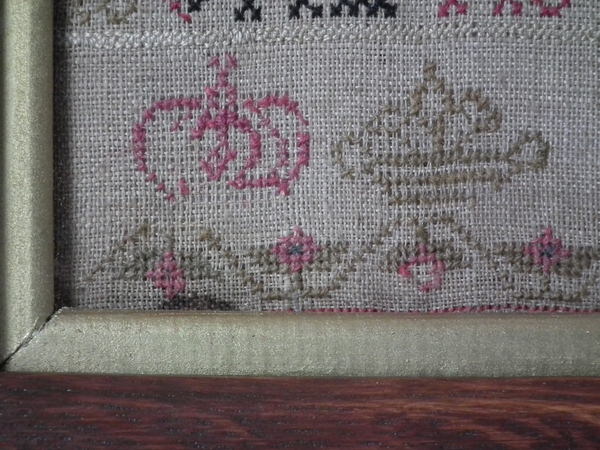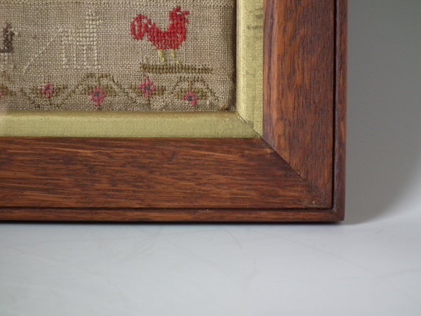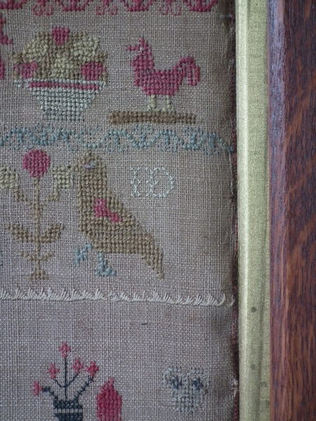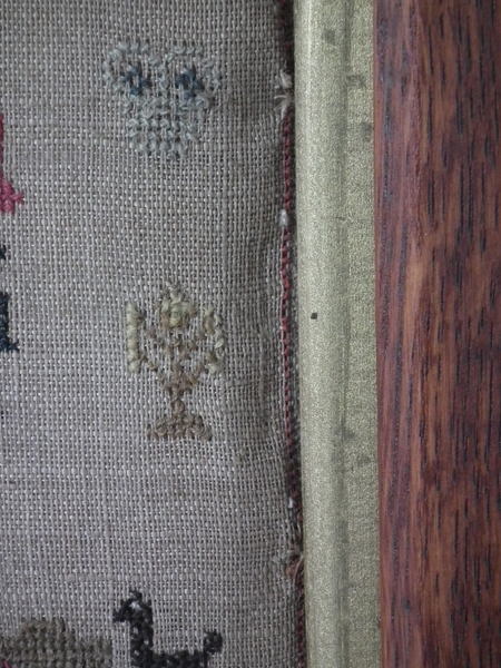 CONDITION: Good. A few small holes to the outer edge where the sampler was originally tacked to a wood stretcher frame.