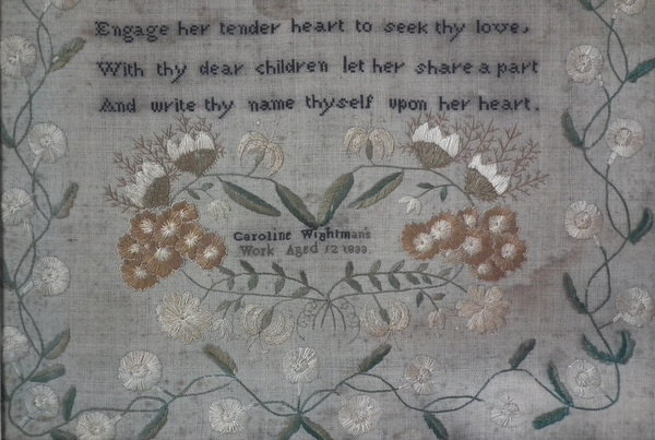 Signed and dated 'Caroline Wightman's Work Aged 12 1833'.