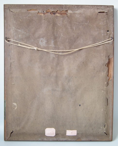 Tacked to wood with brown paper backing.