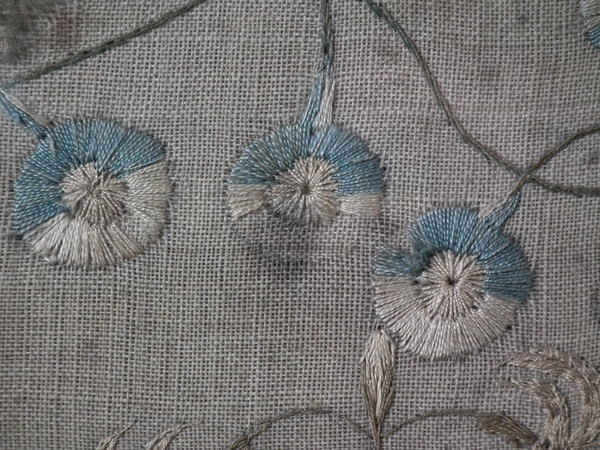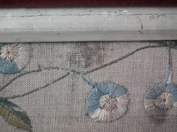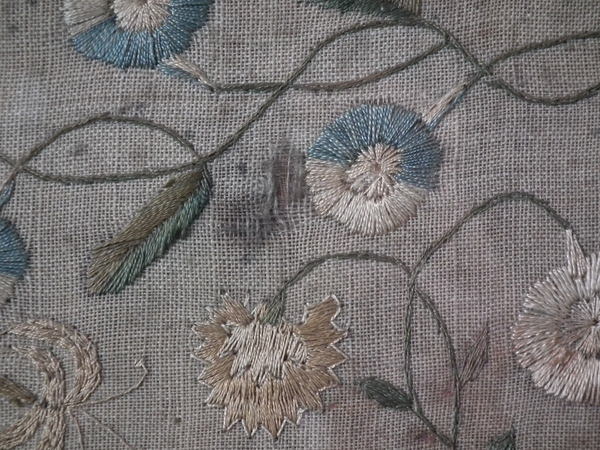 Colours are slightly faded, but still well defined. Very slight colour run around the pale blue threads.