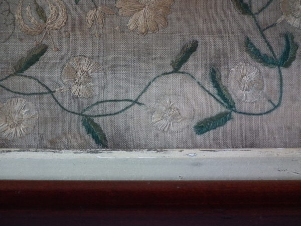 William IV, dated 1833. 16.5ins by 12.5ins wide. 1833 Silkwork sampler by Caroline Wightman.