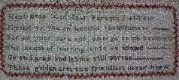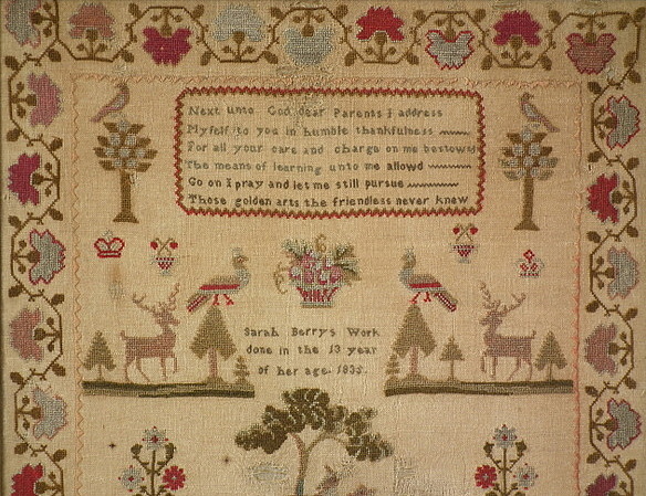 Signed and dated 'Sarah Berrys Work done in the 13 year of her age. 1835.'