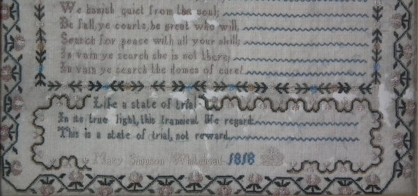 Signed and dated 'Mary Simpson Whitehead 1818'.