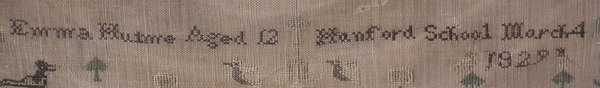 'Emma Hulme Aged 12 Hanford School March 4 1829'.
