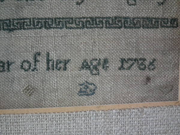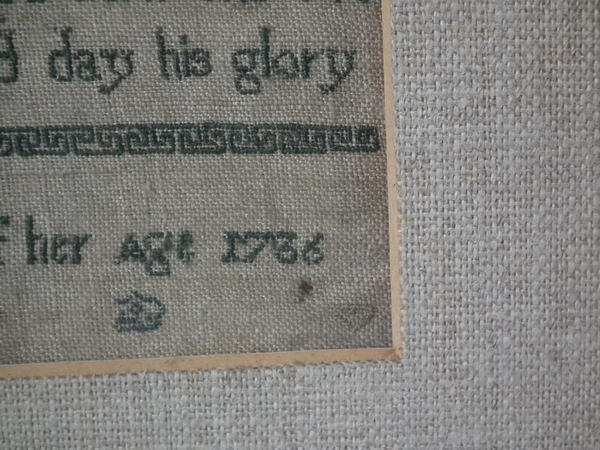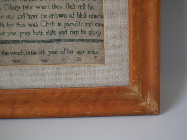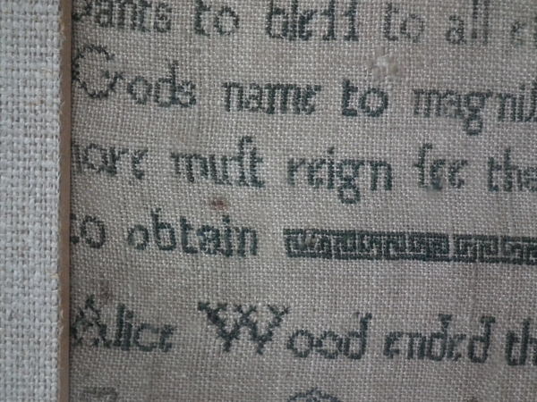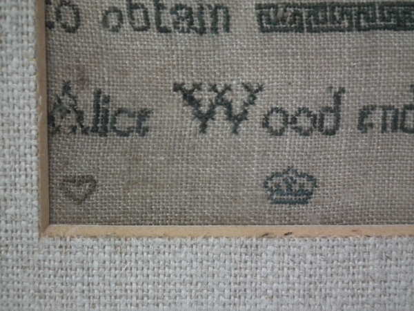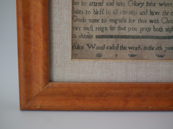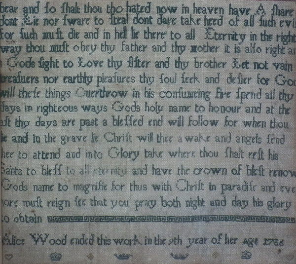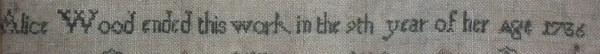 'Alice Wood ended this work in the 9th year of her Age 1736'.