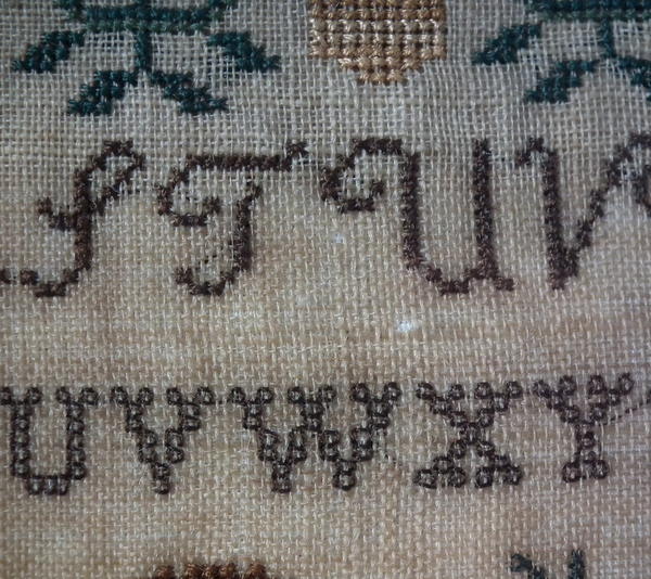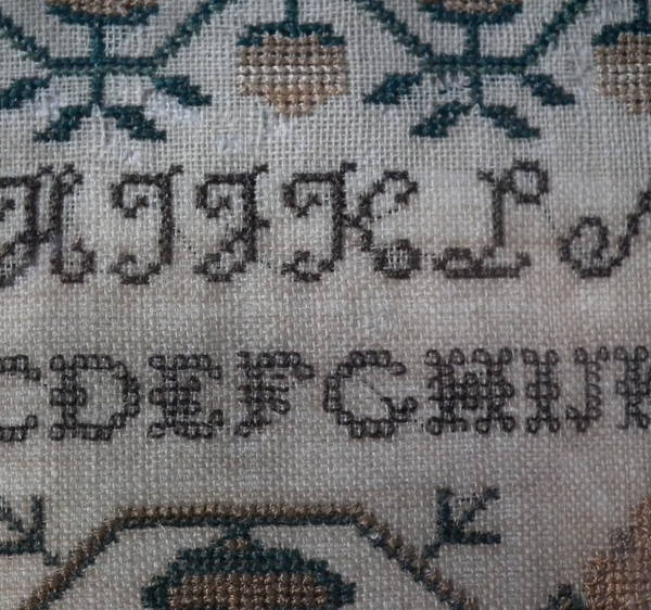 Very minor stitch loss to letters of the alphabet.