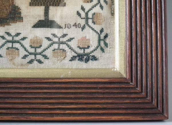 Victorian, dated 1840. 13ins by 15.75ins wide. 1840 Silkwork Sampler by Ann Smart.