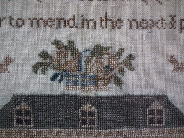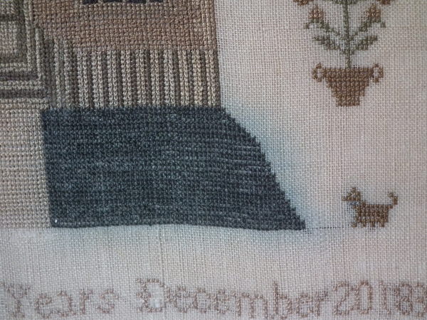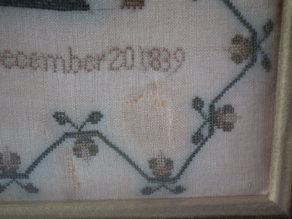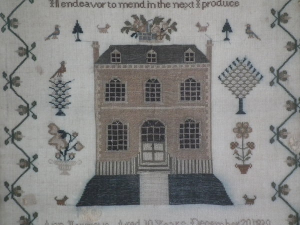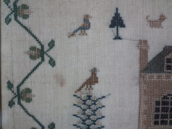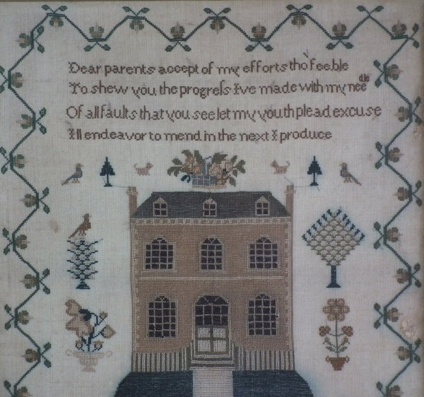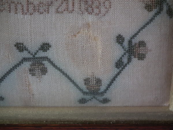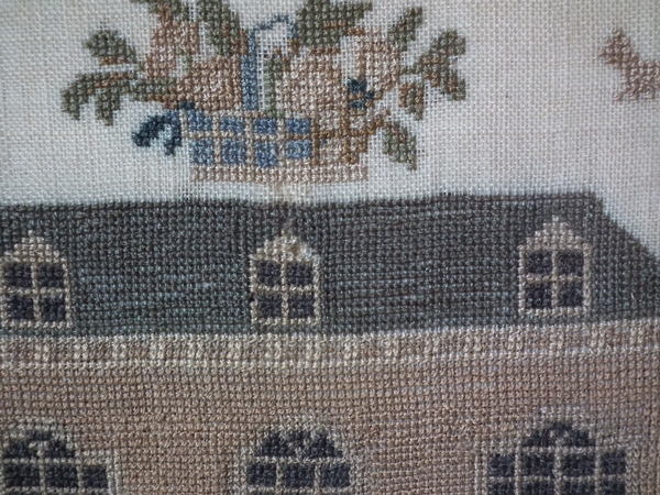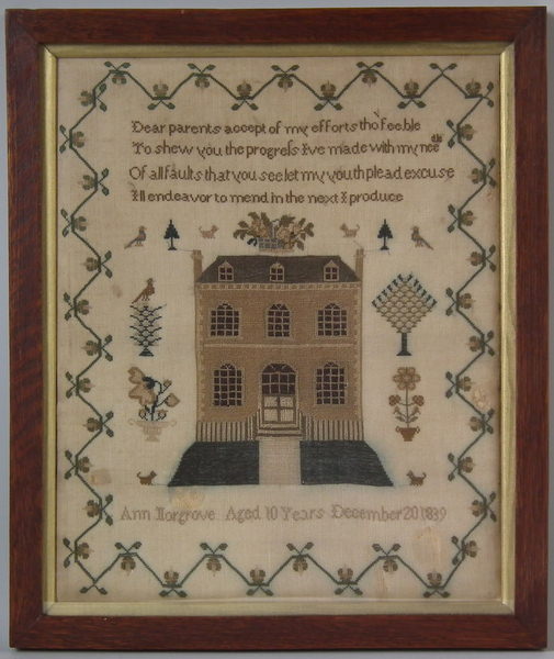 William IV, dated 1839. 15ins high by 12ins wide. 1839 House Sampler by Ann Norgrove.