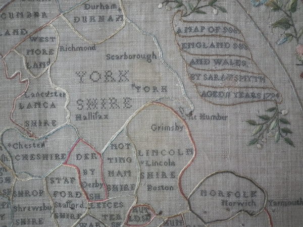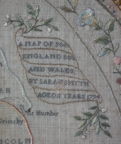 'A MAP OF ENGLAND AND WALES BY SARAH SMYTH AGED 11 YEARS 1794'.