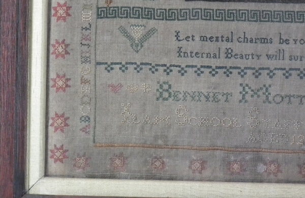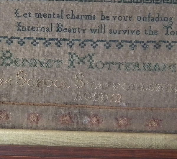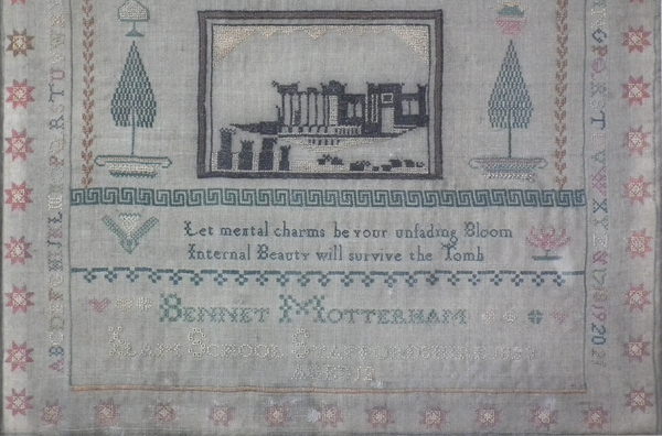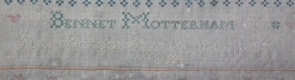 Signed and dated 'BENNET MOTTERHAM, ILAM SCHOOL STAFFORDSHIRE 1823 AGED 12'.
