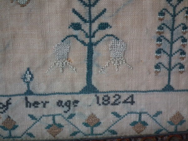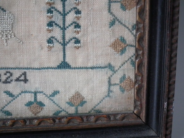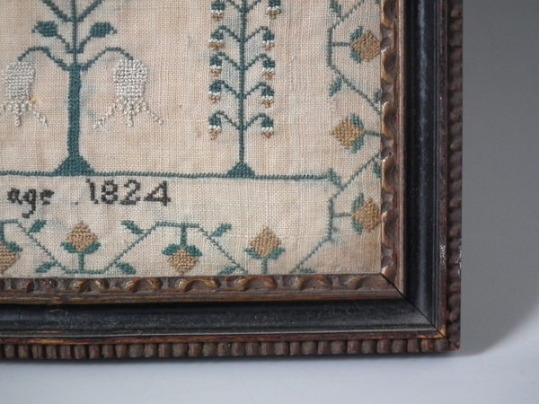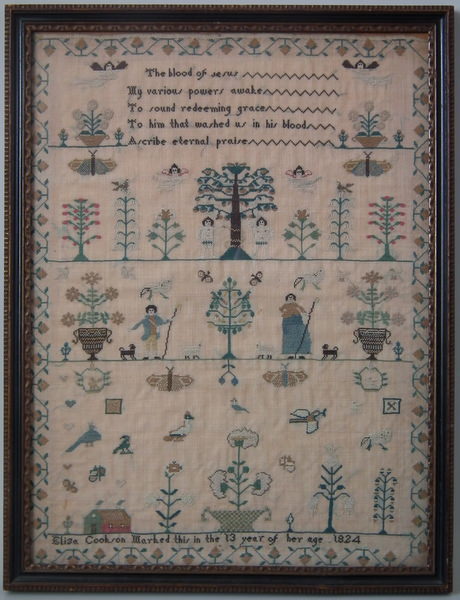George IV, dated 1824. 17ins high by 12.5ins wide. 1824 Adam & Eve Sampler by Eliza Cookson.