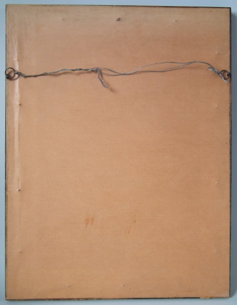 Colours pale blue, green, dark brown, gold, white, black, yellow and pink.