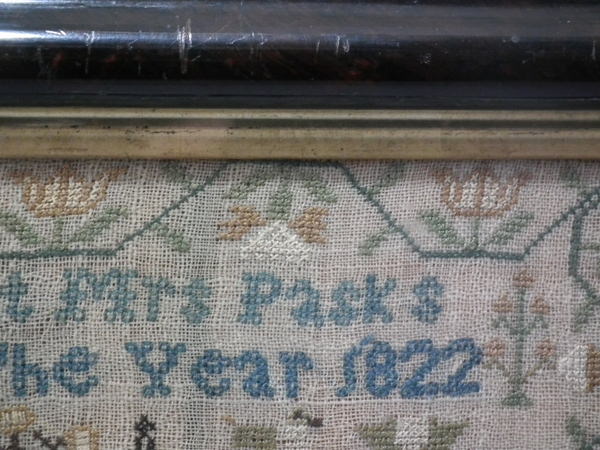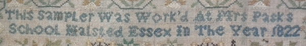 Dated 'This Sampler Was Work'd At Mrs Pasks School Halsted Essex In The Year 1822'.