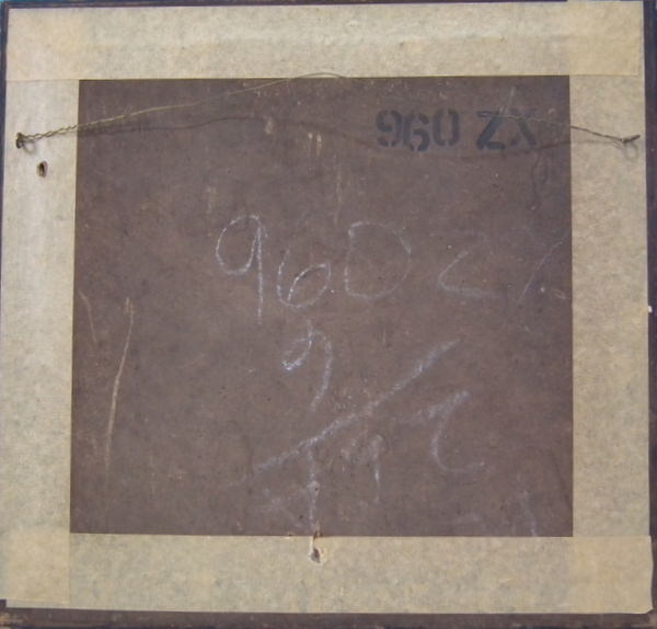 Fixed to wood and brown paper backing.