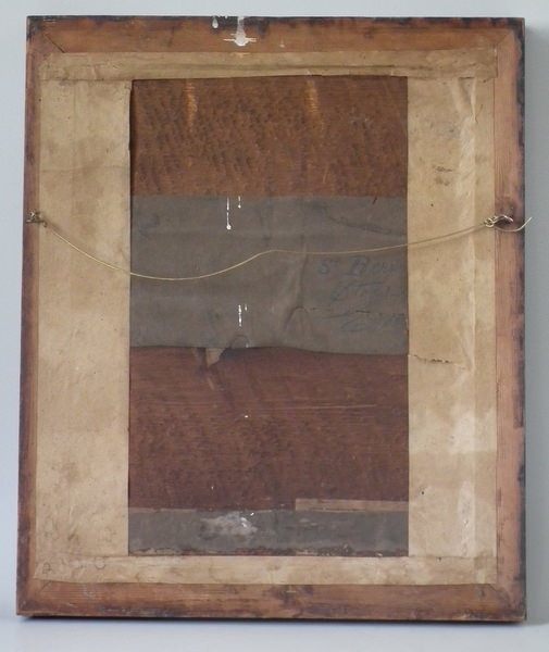 Fixed to linen with wood backing.