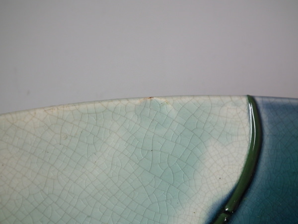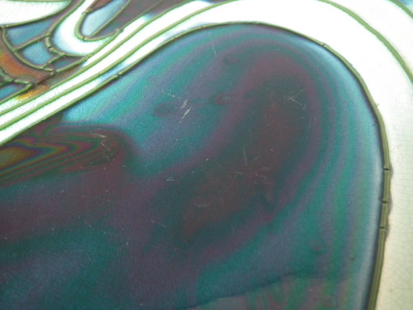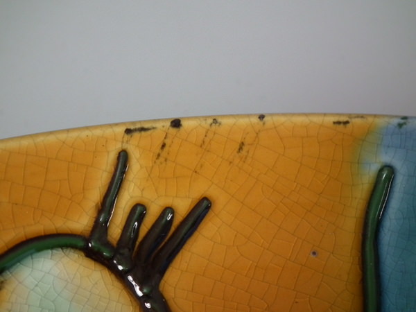 Circa 1910. 15ins by 1.75ins by 15ins high. Large Mintons Secessionist No.5 charger.