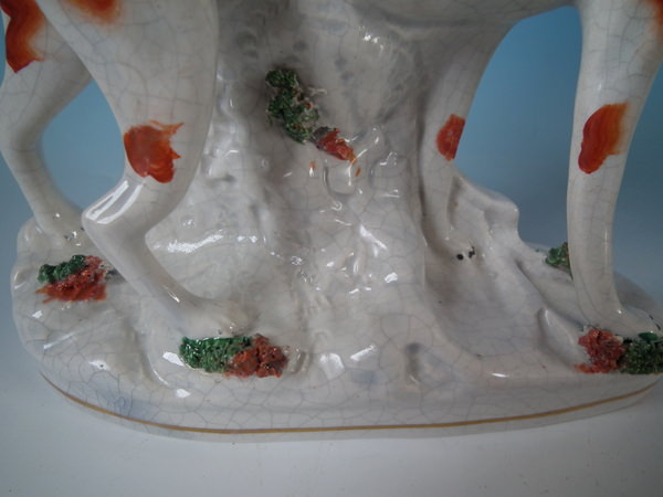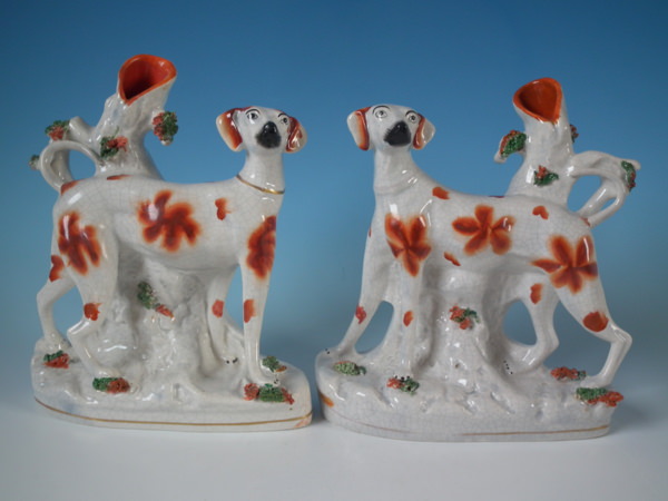 Pair Staffordshire foxhound spill vases