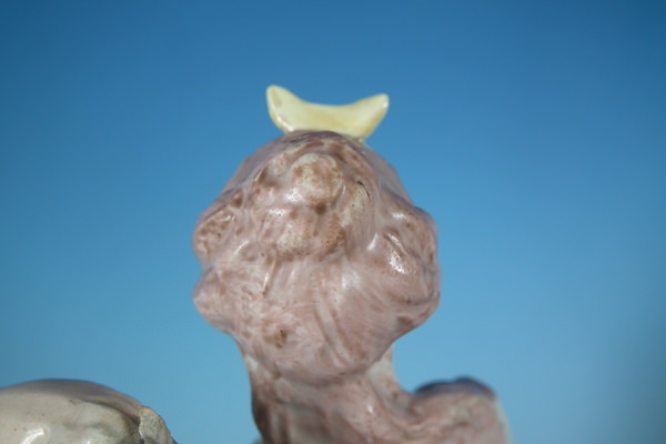 Multi-coloured version. Decorated 'in the round' - decoration to front and reverse.