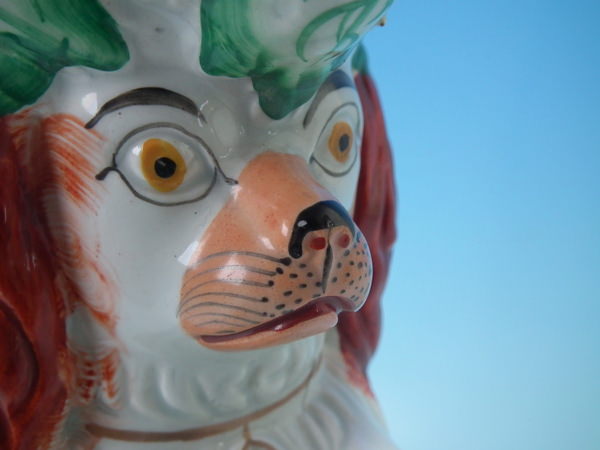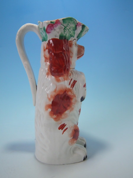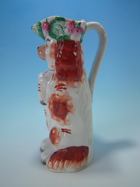 Staffordshire russet & white begging spaniel pitcher