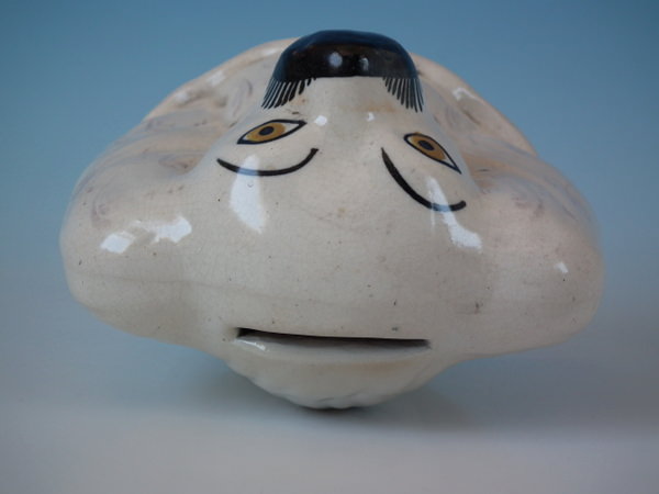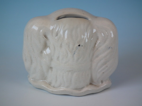 Victorian, circa 1890. 3.9ins high, 4.6ins wide, 3.1ins depth. Staffordshire money box which features a spaniels head/bust, on an oval base.