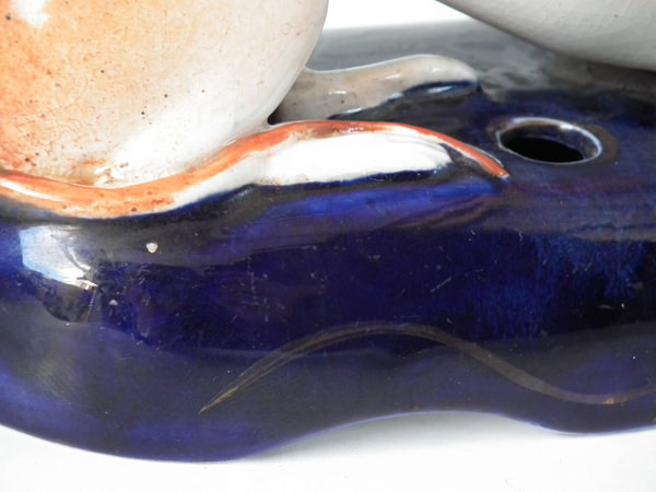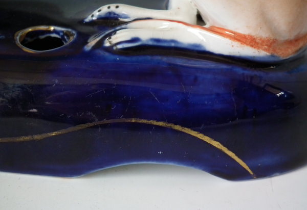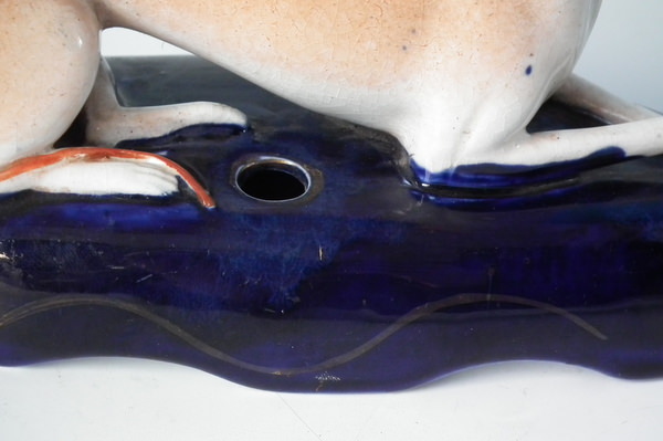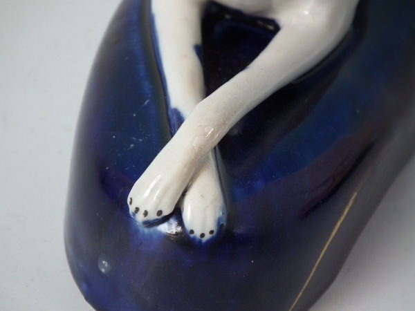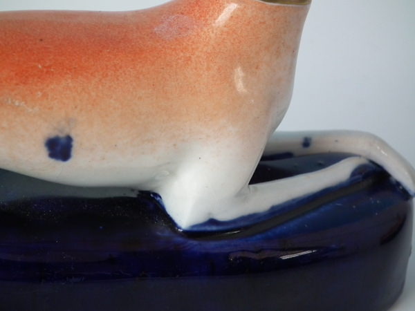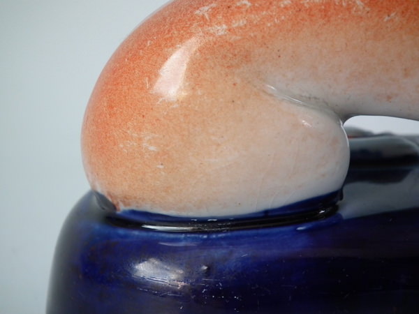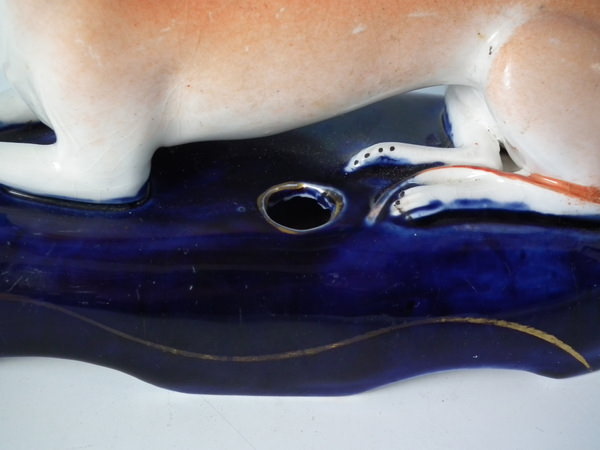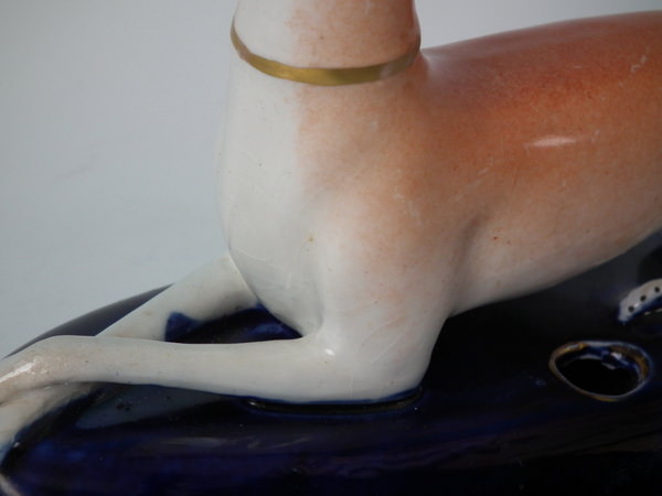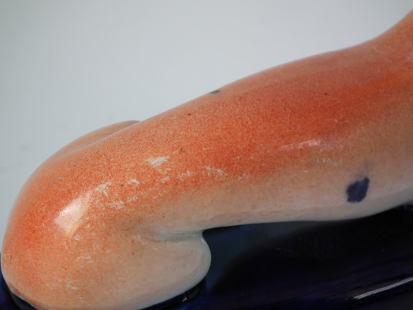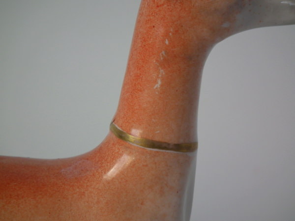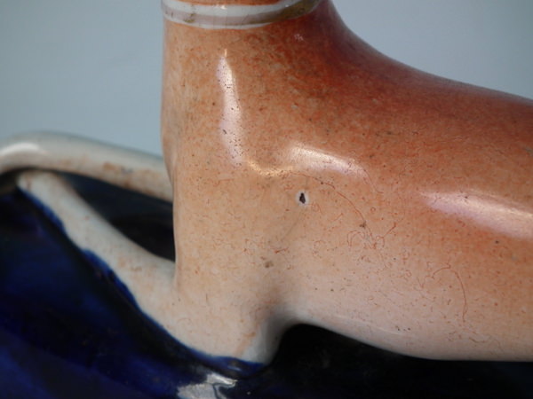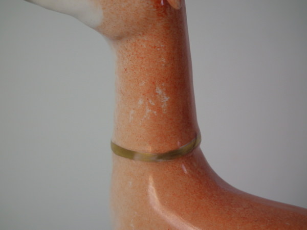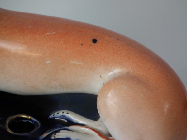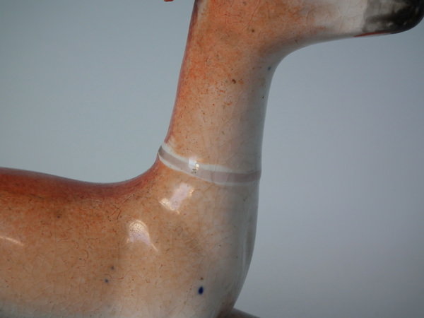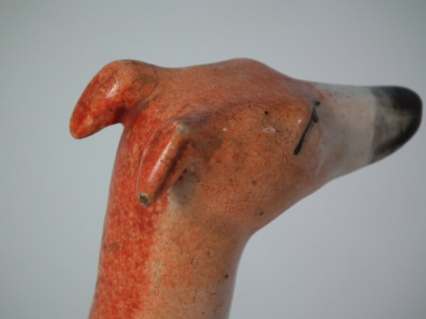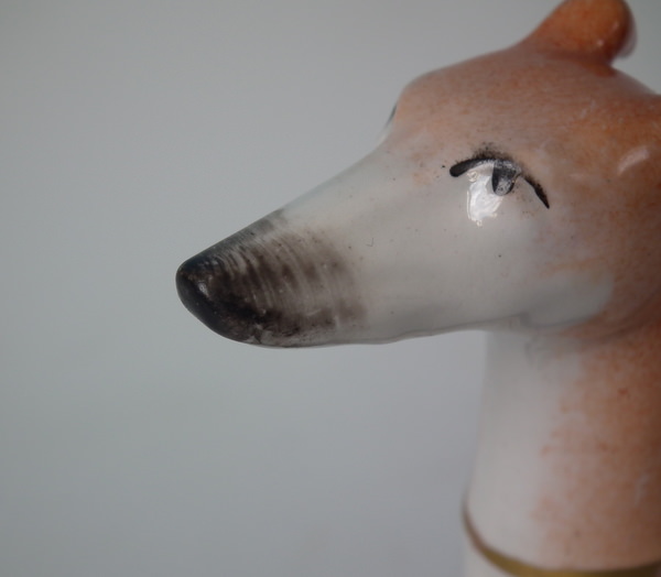 KILN EFFECTS: flecks of stray coloured glaze to the greyhound.