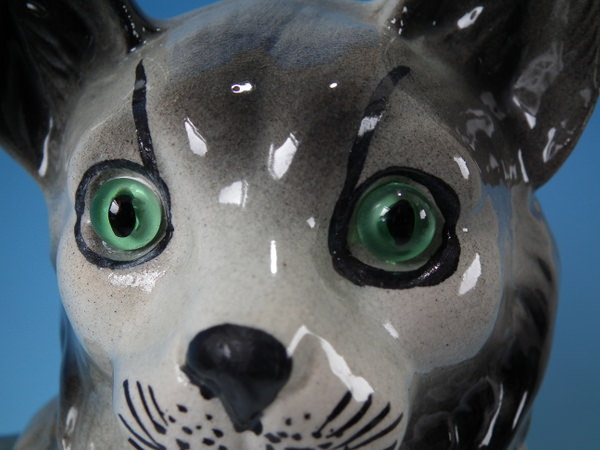 Pair Staffordshire grey cats with glass eyes