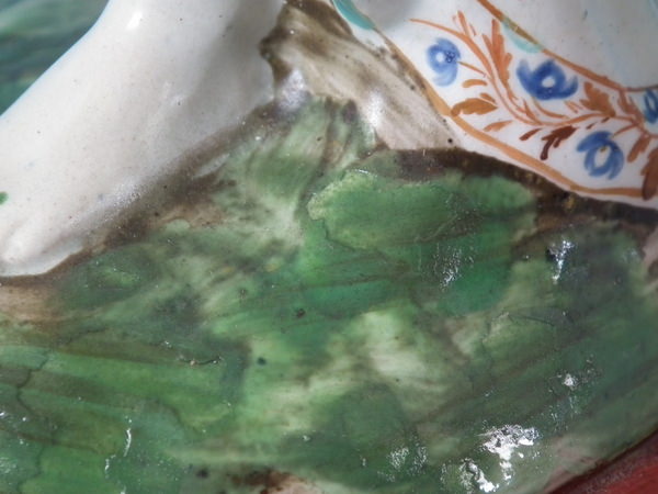 RESTORATION: Retouched paint losses to the bird,