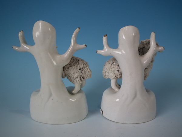 Pair Staffordshire ram & ewe spill vases